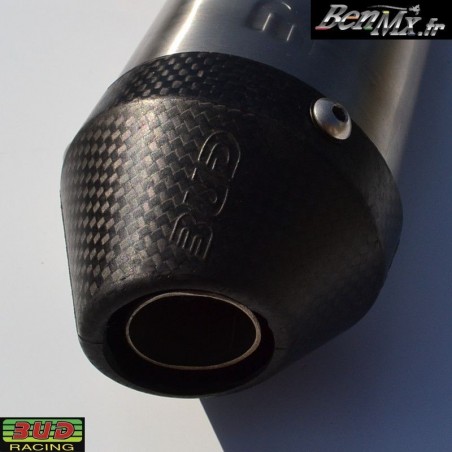Les silencieux Bud racing carbone sont ultra légers Les parties en métal sont 100% inox anti corrosion Nos nouveaux modeles sont sans rivets pour une plus grande longévité et un remplacement facilité de la laine de roche Livrés avec collier inox complet.