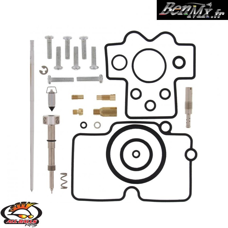 Il comprend généralement: - Gicleur principale - Gicleur de ralenti - Gicleur divers - Pointeau de carburateur - Siège de pointeau - Aiguille avec clips - Vis de richesse (molette de richesse réglable pour les 4 temps) - Joint de cuve - Joint de chapeau - Nombreux joints toriques - Vis de cuve