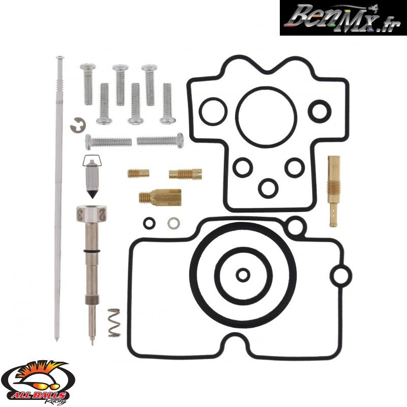 Il comprend généralement: - Gicleur principale - Gicleur de ralenti - Gicleur divers - Pointeau de carburateur - Siège de pointeau - Aiguille avec clips - Vis de richesse (molette de richesse réglable pour les 4 temps) - Joint de cuve - Joint de chapeau - Nombreux joints toriques - Vis de cuve