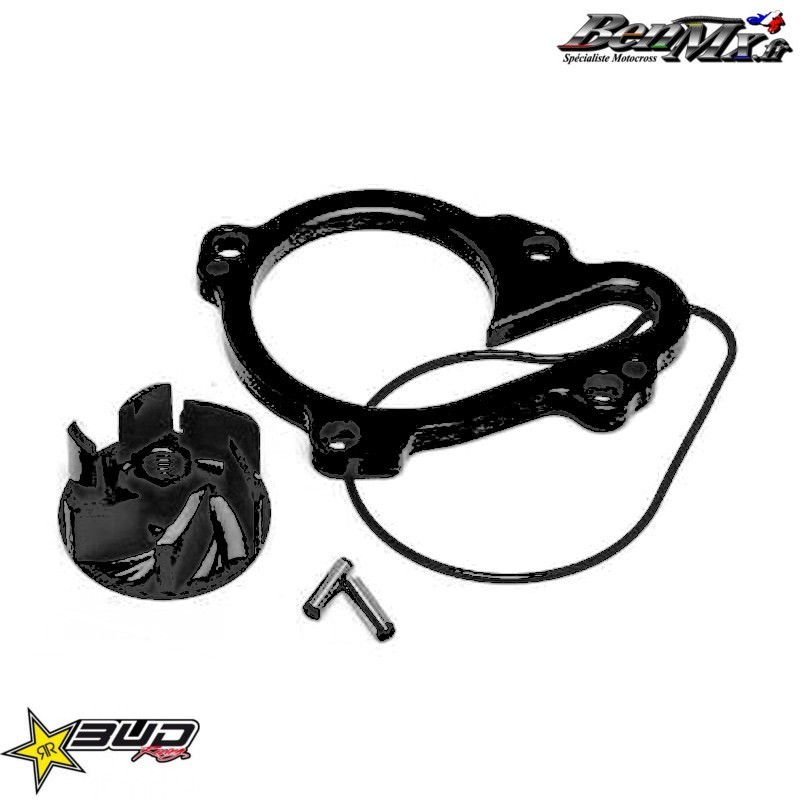 Kit pompe à eau gros débit Bud Racing Noir KTM 125/150 SX 2019/2022 - HUSQVARNA 125 TC 2019/2022 - GASGAS 125 MC 2021/2023 Kit pompe à eau gros débit, le kit comprend lailette, lentretoise et le ou les joints