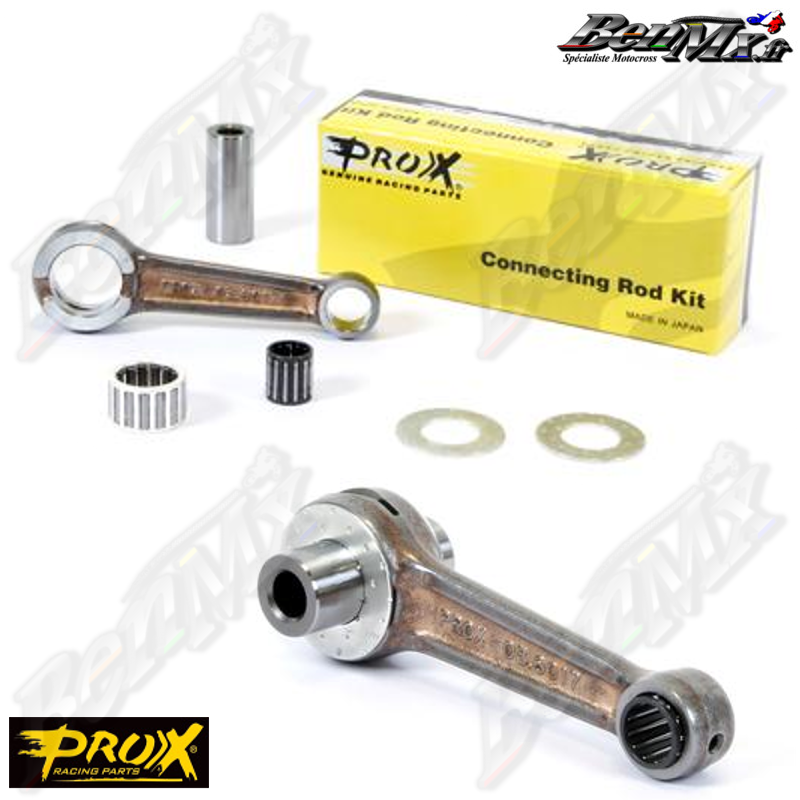 Les kits de bielles ProX sont livrés complets avec maneton, roulement à grande extrémité, roulement à petite extrémité et rondelles.