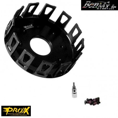 Les cloches d'embrayage PROX sont usinés avec précision à partir d'un alliage d'aluminium Billet 7075-T6 traité thermiquement selon les normes de précision d'origine. Les cloches PROX sont conçus pour maximiser la résistance grâce à un «flux de grains aligné sur les caractéristiques» et utilisent des caractéristiques forgées qui ne peuvent être produites qu'en utilisant notre processus de précision. Nous sommes capables de produire des propriétés mécaniques et une résistance aux chocs et à la fatigue plus élevées. Les cloches PROX sont anodisés dur pour produire une surface résistante à l'abrasion ultra dure et assure une longue durée de fonctionnement de l'embrayage en douceur grâce à l'élimination de l'usure sur les côtés des languettes du panier d'embrayage. Chaque kit est livré avec le matériel nécessaire pour faciliter l'installation.