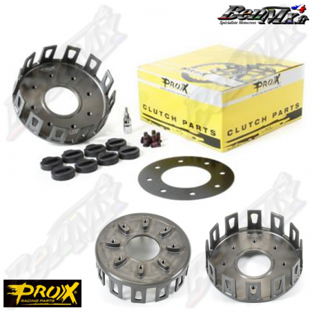 Les cloches d'embrayage PROX sont usinés avec précision à partir d'un alliage d'aluminium Billet 7075-T6 traité thermiquement selon les normes de précision d'origine. Les cloches PROX sont conçus pour maximiser la résistance grâce à un «flux de grains aligné sur les caractéristiques» et utilisent des caractéristiques forgées qui ne peuvent être produites qu'en utilisant notre processus de précision. Nous sommes capables de produire des propriétés mécaniques et une résistance aux chocs et à la fatigue plus élevées. Les cloches PROX sont anodisés dur pour produire une surface résistante à l'abrasion ultra dure et assure une longue durée de fonctionnement de l'embrayage en douceur grâce à l'élimination de l'usure sur les côtés des languettes du panier d'embrayage. Chaque kit est livré avec le matériel nécessaire pour faciliter l'installation.