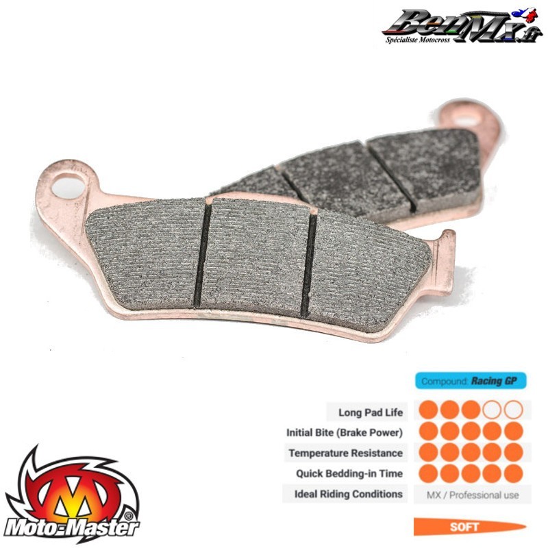 Plaquettes de frein GP Tapis de course MX haut de gamme pour une utilisation professionnelle, le mélange de frittage spécial combine une puissance de freinage maximale avec une résistance à haute température pour éliminer tout éventuel décoloration des freins. Sa morsure initiale élevée et sa sensation linéaire permettent une décélération agressive et contrôlée