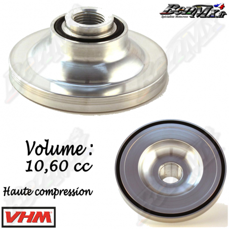 VHM - Dôme haute compression - Volume 10,60cc - HONDA 125 CR 1998/1999 La chambre de combustion peut être réglée rapidement en fonction de la piste et des conditions météorologiques, car les dômes sont faciles à changer. Les dômes sont en aluminium aéronautique pour une résistance à la détonation. Il existe différents dômes avec différents volumes disponibles pour chaque culasse.