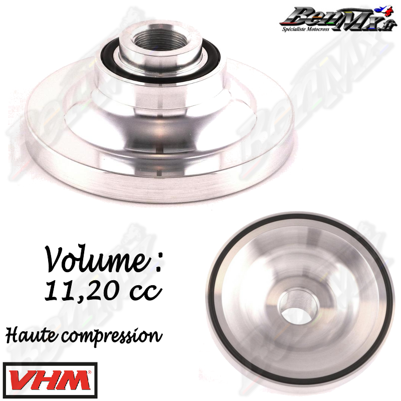 VHM - Dôme haute compression - Volume 11,20cc - HONDA 125 CR 2003 La chambre de combustion peut être réglée rapidement en fonction de la piste et des conditions météorologiques, car les dômes sont faciles à changer. Les dômes sont en aluminium aéronautique pour une résistance à la détonation. Il existe différents dômes avec différents volumes disponibles pour chaque culasse.