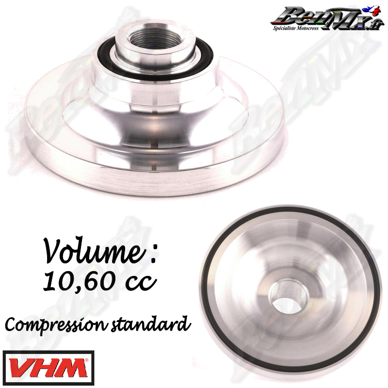 VHM - Dôme standard - Volume 10,60cc - HONDA 125 CR 2004 La chambre de combustion peut être réglée rapidement en fonction de la piste et des conditions météorologiques, car les dômes sont faciles à changer. Les dômes sont en aluminium aéronautique pour une résistance à la détonation. Il existe différents dômes avec différents volumes disponibles pour chaque culasse.