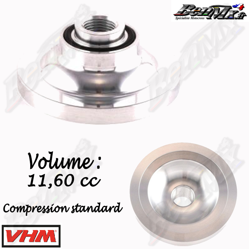 VHM - Dôme standard - Volume 11,60cc - KAWASAKI 125 KX 2003/2008 La chambre de combustion peut être réglée rapidement en fonction de la piste et des conditions météorologiques, car les dômes sont faciles à changer. Les dômes sont en aluminium aéronautique pour une résistance à la détonation. Il existe différents dômes avec différents volumes disponibles pour chaque culasse.