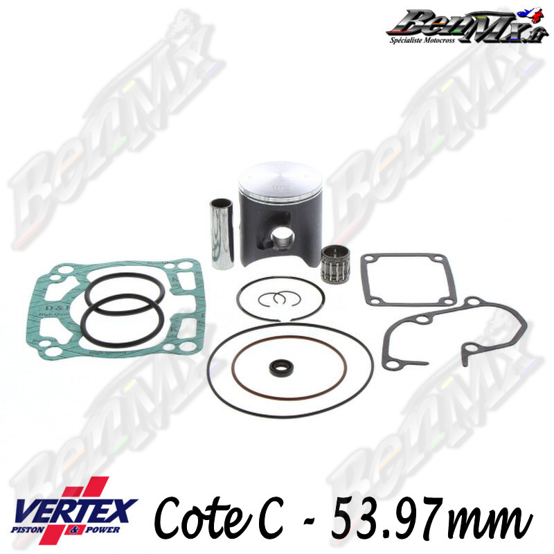 Kit piston VERTEX Moulé + Joints haut moteur + Cage à aiguilles Cote C 53,97mm - KAWASAKI 125 KX 2003/2008