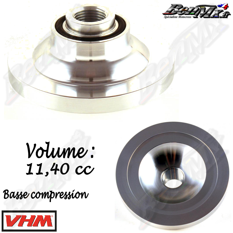 VHM - Dôme basse compression - Volume 11,40cc - SUZUKI 125 RM 2004 La chambre de combustion peut être réglée rapidement en fonction de la piste et des conditions météorologiques, car les dômes sont faciles à changer. Les dômes sont en aluminium aéronautique pour une résistance à la détonation. Il existe différents dômes avec différents volumes disponibles pour chaque culasse.