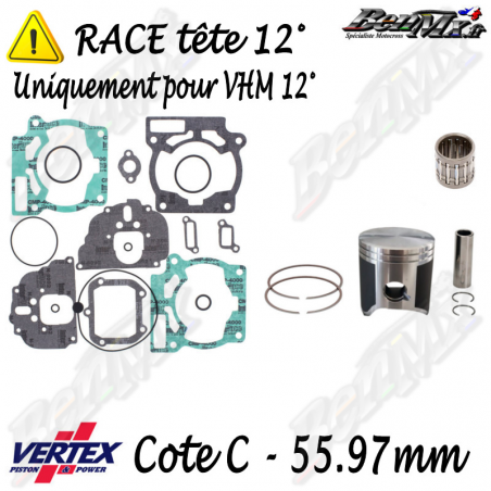 Kit piston VERTEX Moulé RACE Bi-Segments (tête 12°)(uniquement pour dôme VHM 12°) + Joints haut moteur + Cage à aiguilles - Alésage 53,96mm - (voir description pour models correspondants)