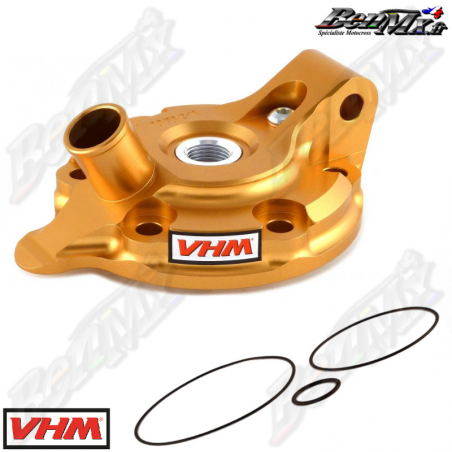 VHM - Culasse Or sans dôme (avec joints de culasse) - KTM 125 SX 2007/2015 - 125 EXC 2007/2016 - HUSQVARNA 125 TC 2014/2015 - 125 TE 2015/2016 Les culasses VHM de rechange dorées avec chambres de combustion interchangeables sont bien connues dans le monde de la course 2 temps. Elles sont spécialement développées pour une puissance optimale pendant toute la course. La culasse comporte un conduit d'eau spécialement conçu pour un débit d'eau optimal. - Plus de puissance moteur - Meilleur transfert de chaleur - Chambres de combustion interchangeables