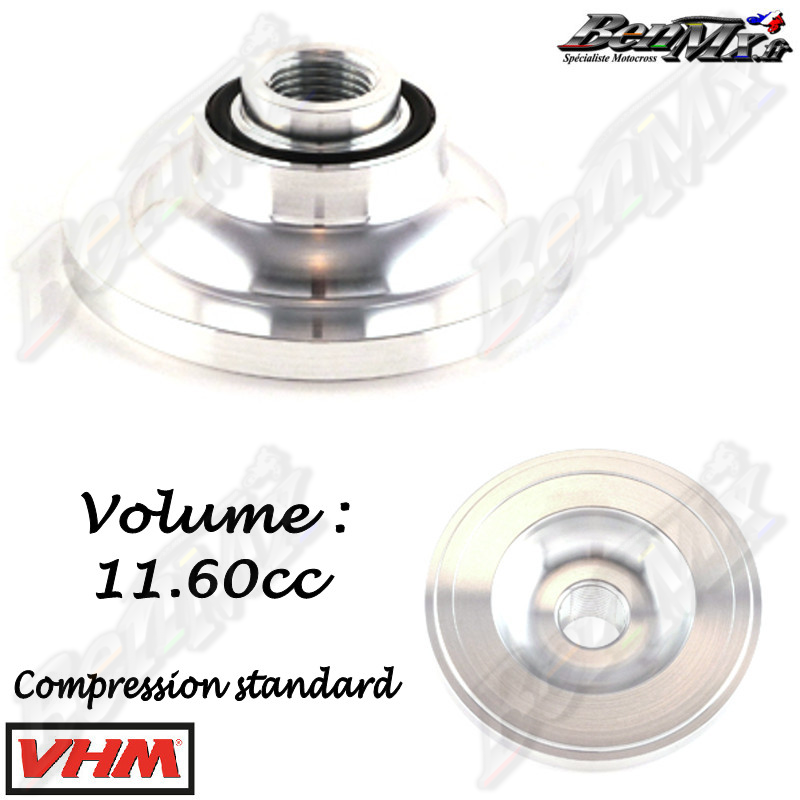 VHM - Dôme standard - Volume 11,60cc - KTM 125 SX 2007/2012 Les culasses VHM de rechange dorées avec chambres de combustion interchangeables sont bien connues dans le monde de la course 2 temps. Elles sont spécialement développées pour une puissance optimale pendant toute la course. La culasse comporte un conduit d'eau spécialement conçu pour un débit d'eau optimal. - Plus de puissance moteur - Meilleur transfert de chaleur - Chambres de combustion interchangeables