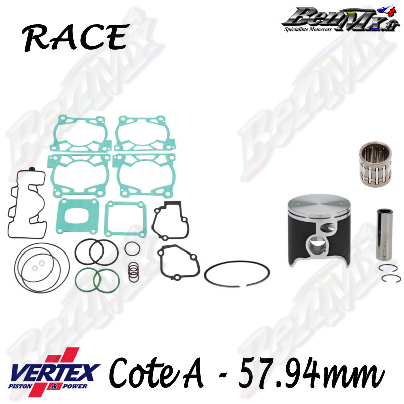 Inclus dans ce kit : - piston - clips de piston - axe de piston - segments - joint haut moteur - cage à aiguilles