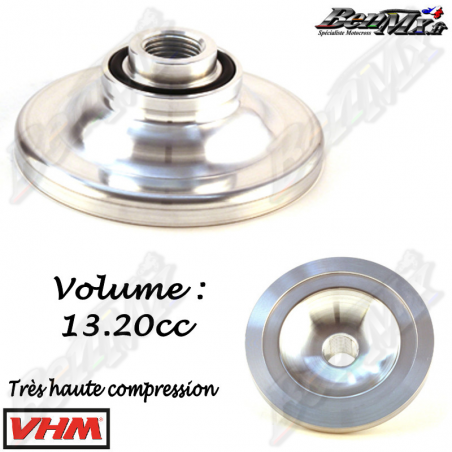 VHM - Dôme Très haute compression - Volume 13,20cc - KTM 150 SX 2016/2022 Les culasses VHM de rechange dorées avec chambres de combustion interchangeables sont bien connues dans le monde de la course 2 temps. Elles sont spécialement développées pour une puissance optimale pendant toute la course. La culasse comporte un conduit d'eau spécialement conçu pour un débit d'eau optimal. - Plus de puissance moteur - Meilleur transfert de chaleur - Chambres de combustion interchangeables