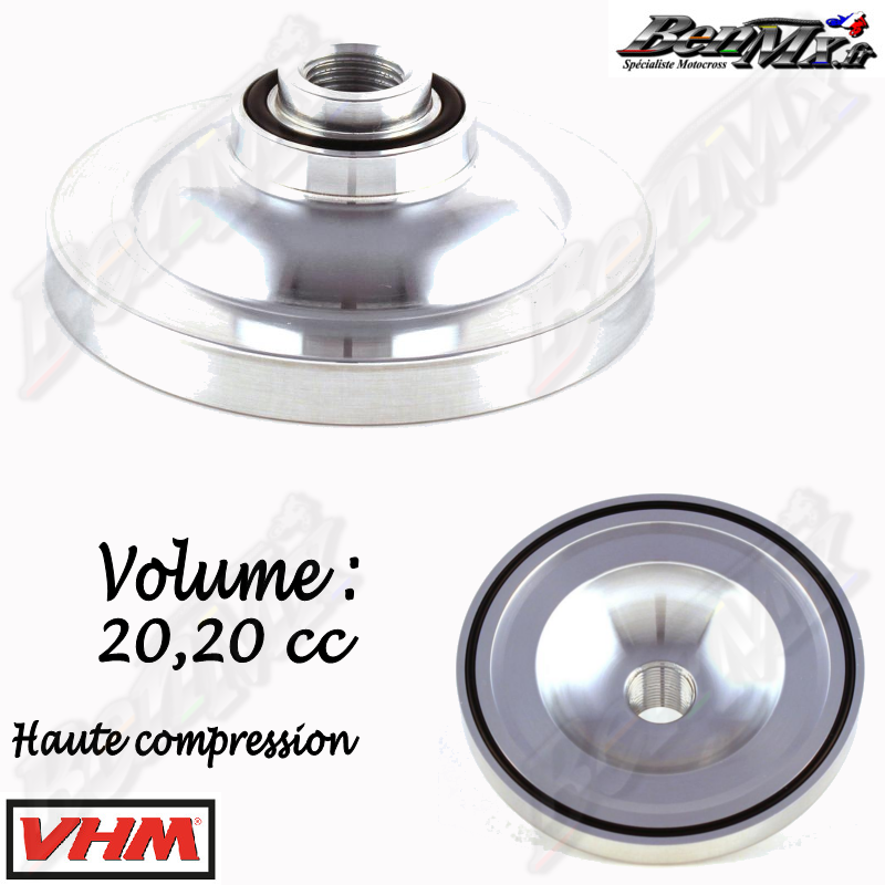 VHM - Dôme haute compression - Volume 20,20cc - HONDA 250 CR 2002/2004 La chambre de combustion peut être réglée rapidement en fonction de la piste et des conditions météorologiques, car les dômes sont faciles à changer. Les dômes sont en aluminium aéronautique pour une résistance à la détonation. Il existe différents dômes avec différents volumes disponibles pour chaque culasse.