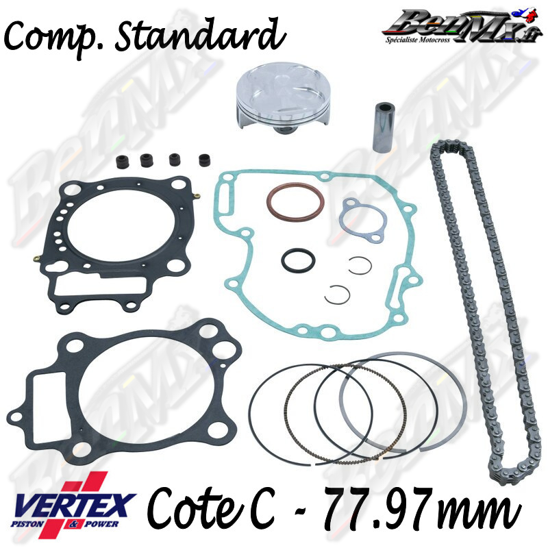 Kit piston VERTEX Forgé + Joints haut moteur + Chaine de distribution Cote C 77,97mm - comp 13.0:1 - HONDA 250 CRF 2008/2009