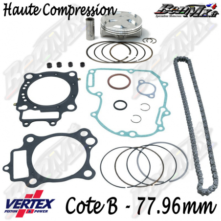 Kit piston VERTEX Forgé Haute compression + Joints haut moteur + Chaine de distribution Cote B 77,96mm - comp 13.5:1 - HONDA 250 CRF 2008/2009