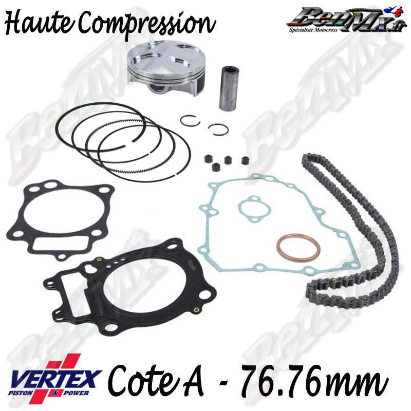 Kit piston VERTEX Forgé Haute compression + Joints haut moteur + Chaine de distribution Cote A 76,76mm - comp 14.1:1 - HONDA 250 CRF 2010/2013