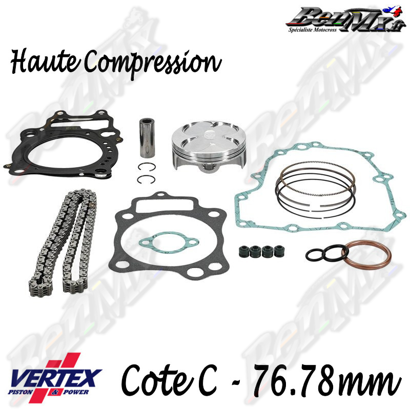 Kit piston VERTEX Forgé Haute compression + Joints haut moteur + Chaine de distribution Cote C 76,78mm - comp 14.1:1 - HONDA 250 CRF 2014/2015