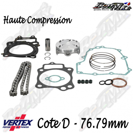 Kit piston VERTEX Forgé Haute compression + Joints haut moteur + Chaine de distribution Cote D 76,79mm - comp 14.1:1 - HONDA 250 CRF 2014/2015