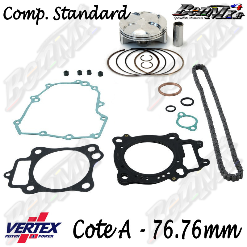 Kit piston VERTEX Forgé + Joints haut moteur + Chaine de distribution Cote A 76,76mm - comp 13.8:1 - HONDA 250 CRF 2016/2017