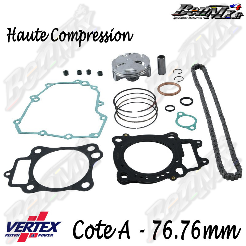 Kit piston VERTEX Forgé Haute compression + Joints haut moteur + Chaine de distribution Cote A 76,76mm - comp 14.3:1 - HONDA 250 CRF 2016/2017