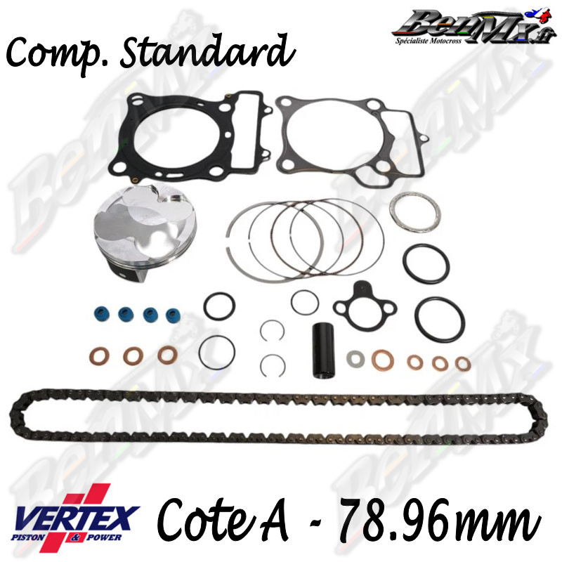 Kit piston VERTEX Forgé + Joints haut moteur + Chaine de distribution Cote A 78,96mm - comp 13.9:1 - HONDA 250 CRF 2018/2019