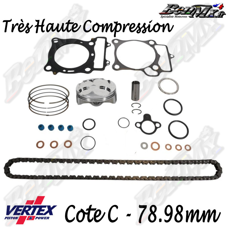 Kit piston VERTEX Forgé Très Haute compression + Joints haut moteur + Chaine de distribution Cote C 78,98mm - comp 14.6:1 - HONDA 250 CRF 2018/2019