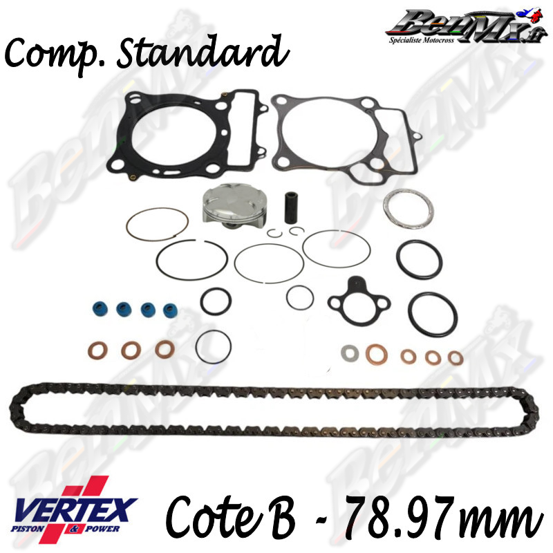 Kit piston VERTEX Forgé + Joints haut moteur + Chaine de distribution Cote B 78,97mm - comp 13,9:1 - HONDA 250 CRF 2020/2021
