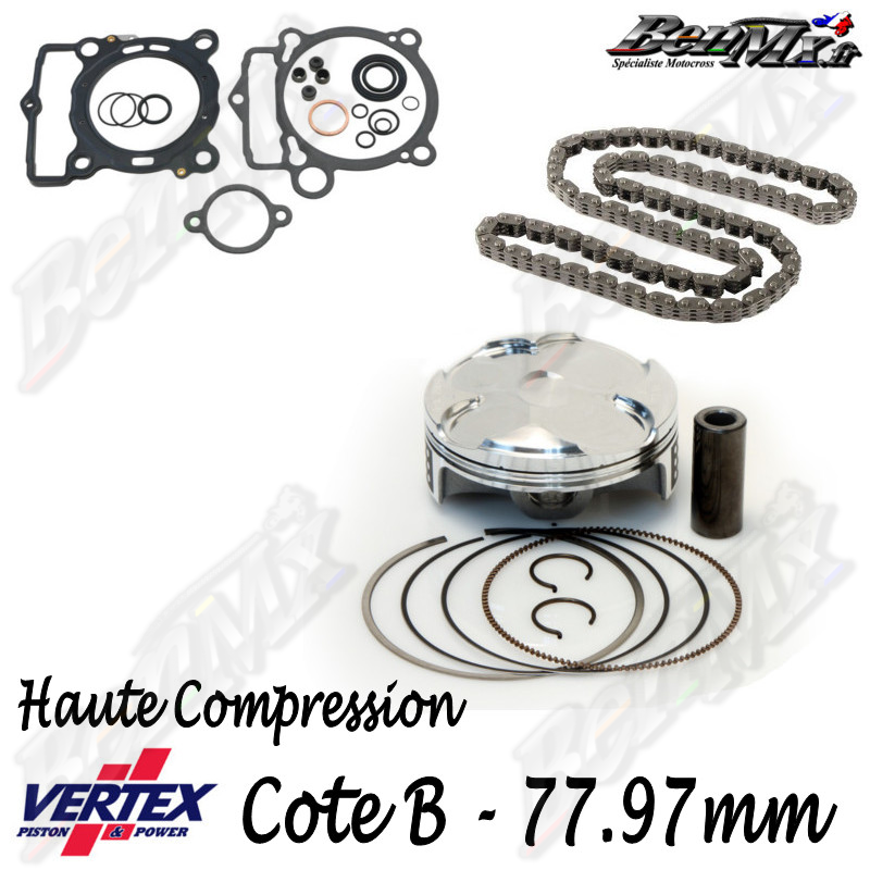 Kit piston VERTEX Forgé Haute compression 13,5:1 + Joints haut moteur + Chaine de distribution - Alésage 77,97mm - GAS GAS 250 ECF 2021/2023 - KTM 250 EXC-F 2017/2023 - HUSQVARNA 250 FE 2017/2023 - ref: VTKTC24114B