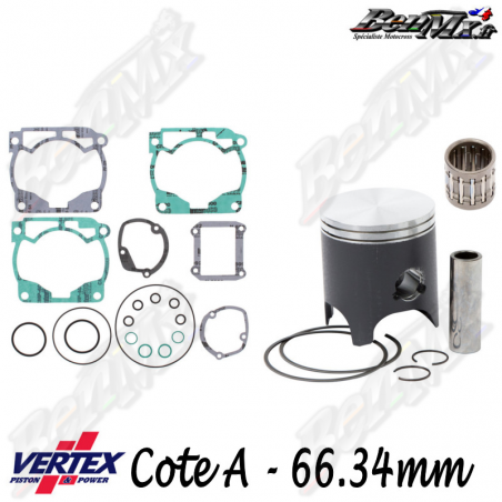 Inclus dans ce kit : - piston - clips de piston - axe de piston - segments - joint haut moteur - cage à aiguilles