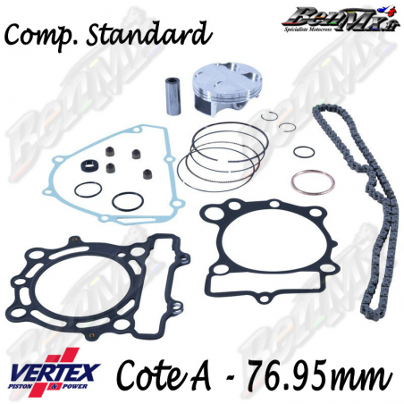 Kit piston VERTEX Forgé + Joints haut moteur + Chaine de distribution Cote A 76,95mm - comp 13.2:1 - KAWASAKI 250 KXF 2010