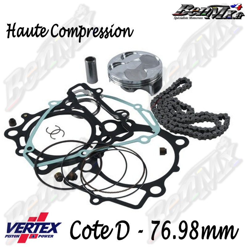 Kit piston VERTEX Forgé Haute compression + Joints haut moteur + Chaine de distribution Cote D 76,98mm - comp 14.3:1 - KAWASAKI 250 KXF 2015/2016