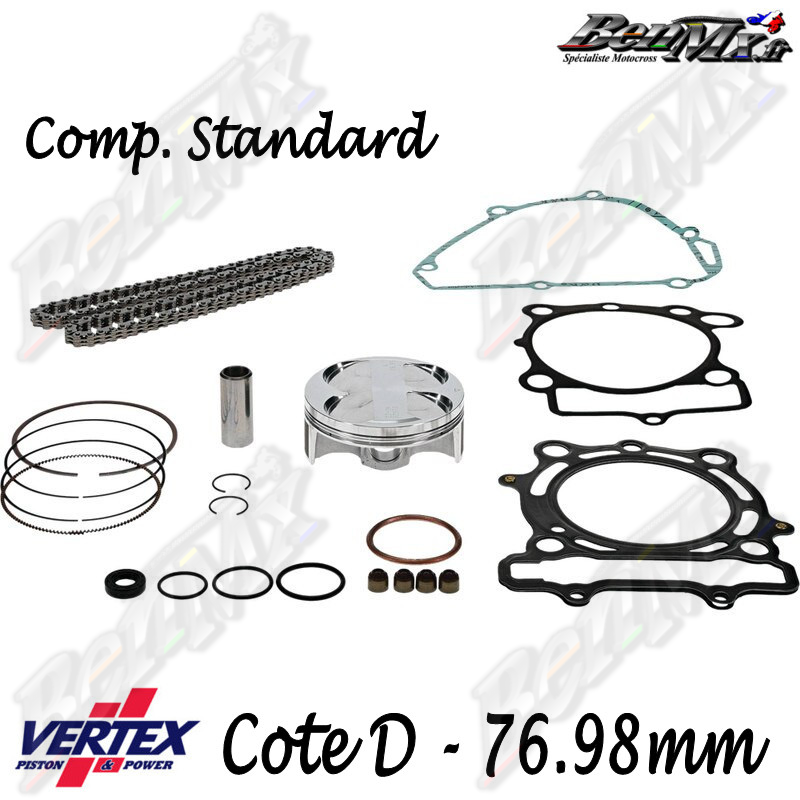 Kit piston VERTEX Forgé + Joints haut moteur + Chaine de distribution Cote D 76,98mm - comp 13.4:1 - KAWASAKI 250 KXF 2017/2019