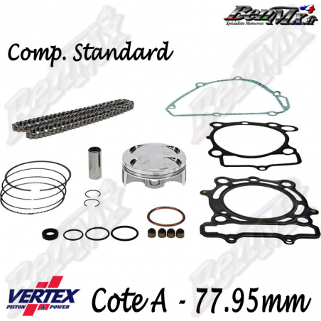 Kit piston VERTEX Forgé + Joints haut moteur + Chaine de distribution Cote A 77,95mm - comp 14.2:1 - KAWASAKI 250 KXF 2020