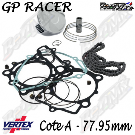 Kit piston VERTEX Forgé Haute compression GP RACER + Joints haut moteur + Chaine de distribution Cote A 77,95mm - comp HC - KAWASAKI 250 KXF 2023/2025