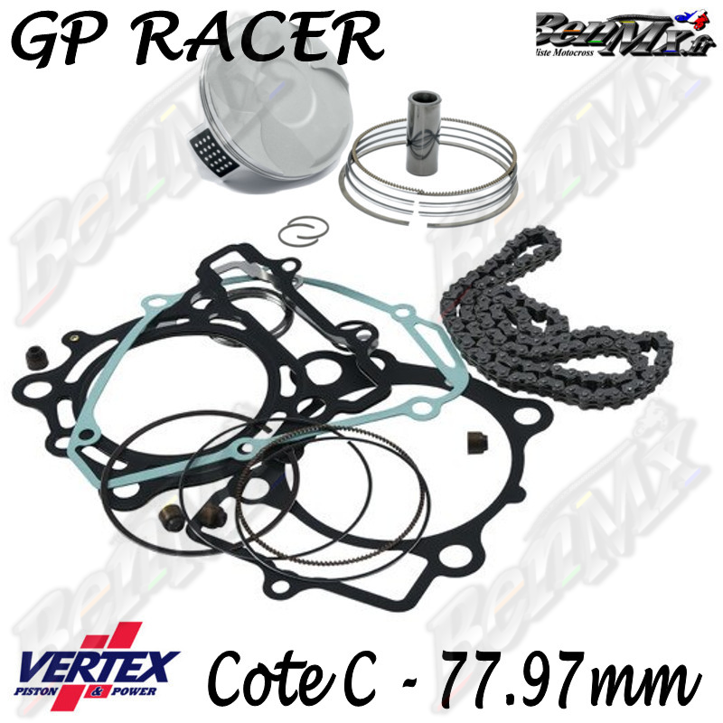 Kit piston VERTEX Forgé Haute compression GP RACER + Joints haut moteur + Chaine de distribution Cote C 77,97mm - comp HC - KAWASAKI 250 KXF 2023/2025