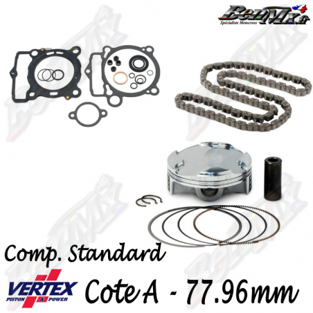 Kit piston VERTEX Forgé compression standard 14,4:1 + Joints haut moteur + Chaine de distribution - Alésage 77,96mm - GAS GAS 250 MCF 2021/2023 - KTM 250 SX-F 2016/2022 - HUSQVARNA 250 FC 2016/2022 - ref: VTKTC24097A