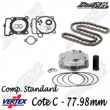Kit piston VERTEX Forgé compression standard 14,4:1 + Joints haut moteur + Chaine de distribution - Alésage 77,98mm - GAS GAS 250 MCF 2021/2023 - KTM 250 SX-F 2016/2022 - HUSQVARNA 250 FC 2016/2022 - ref: VTKTC24097C