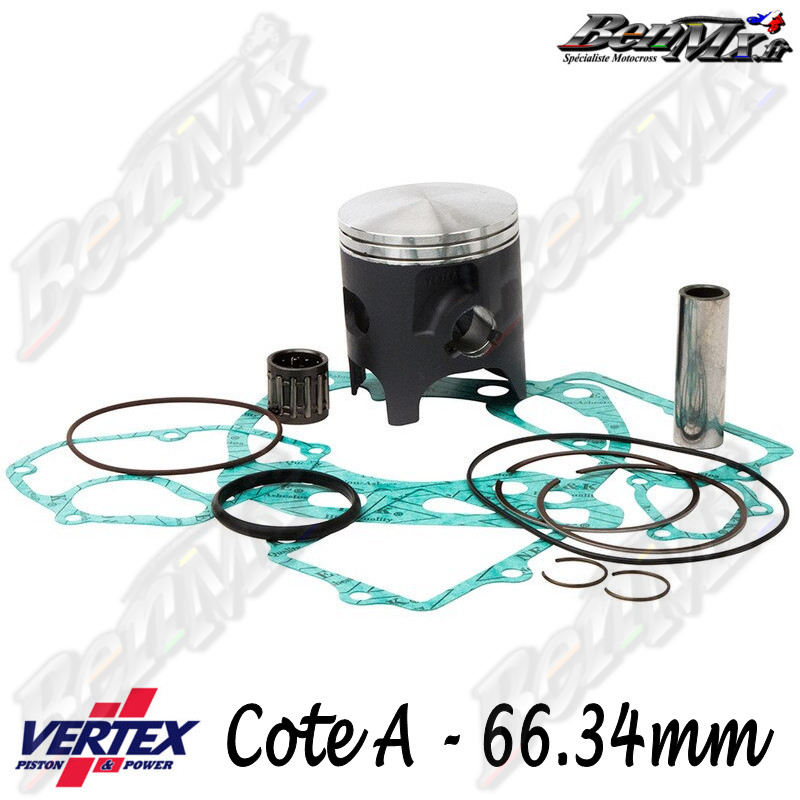 Kit piston VERTEX Moulé Bi-segments + Joints haut moteur + Cage à aiguilles Cote A 66,34mm - SUZUKI 250 RM 2003/2008