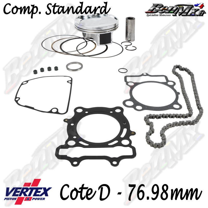 Kit piston VERTEX Forgé + Joints haut moteur + Chaine de distribution Cote D 76,98mm - comp 13.4:1 - SUZUKI 250 RMZ 2010/2012