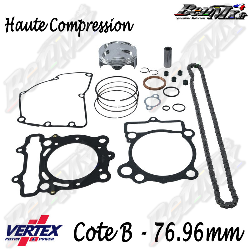 Kit piston VERTEX Forgé Haute compression + Joints haut moteur + Chaine de distribution Cote B 76,96mm - comp 13.9:1 - SUZUKI 250 RMZ 2013/2015