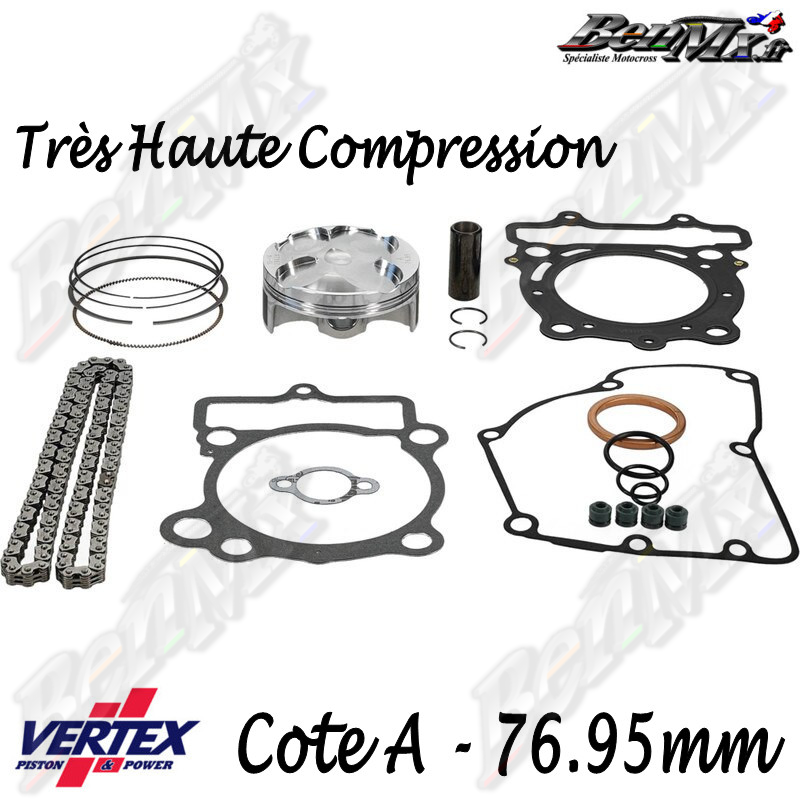 Kit piston VERTEX Forgé Très Haute compression + Joints haut moteur + Chaine de distribution Cote A 76,95mm - comp 14.2:1 - SUZUKI 250 RMZ 2016/2025
