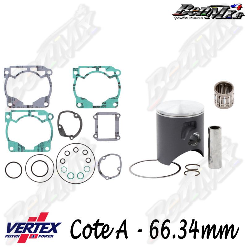 Inclus dans ce kit : - piston - clips de piston - axe de piston - segments - joint haut moteur - cage à aiguilles