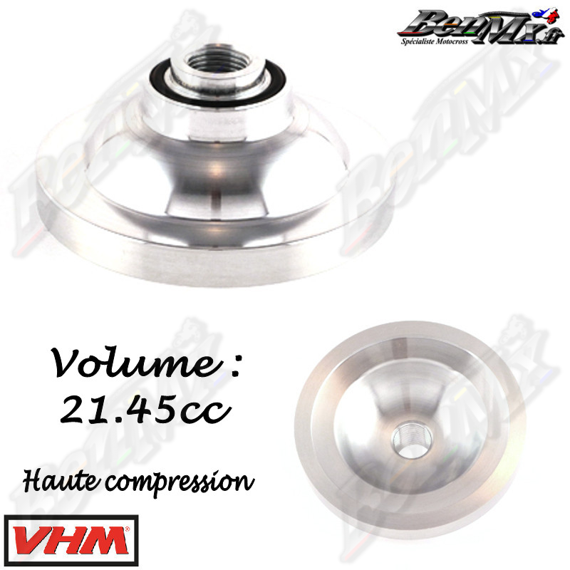 VHM - Dôme haute compression - Volume 21,45cc - KTM 250 SX 2007/2016 - HUSQVARNA 250 TC 2014/2016 Les culasses VHM de rechange dorées avec chambres de combustion interchangeables sont bien connues dans le monde de la course 2 temps. Elles sont spécialement développées pour une puissance optimale pendant toute la course. La culasse comporte un conduit d'eau spécialement conçu pour un débit d'eau optimal. - Plus de puissance moteur - Meilleur transfert de chaleur - Chambres de combustion interchangeables