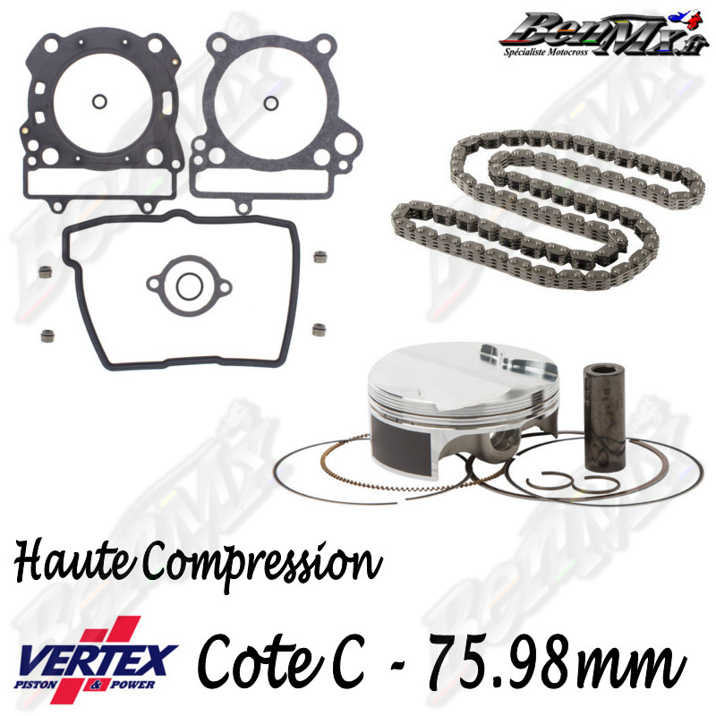 Inclus dans ce kit: - piston - clips de piston - axe de piston - segments - joint haut moteur - chaîne de distribution