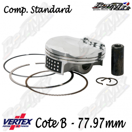 Les pistons Vertex pour moteurs 4 temps sont livrés forgé à chaud en alliage aéronautique 2618, un produit de très haute qualité qui garantit des qualités résistance et durabilité supérieures. Vertex applique ensuite des profils exclusifs et des conformations de tête dérivés du développement réalisé par les Teams, le tout dans le but de maximiser la puissance, le couple et les performances en général, tout en réduisant la consommation d'huile.
