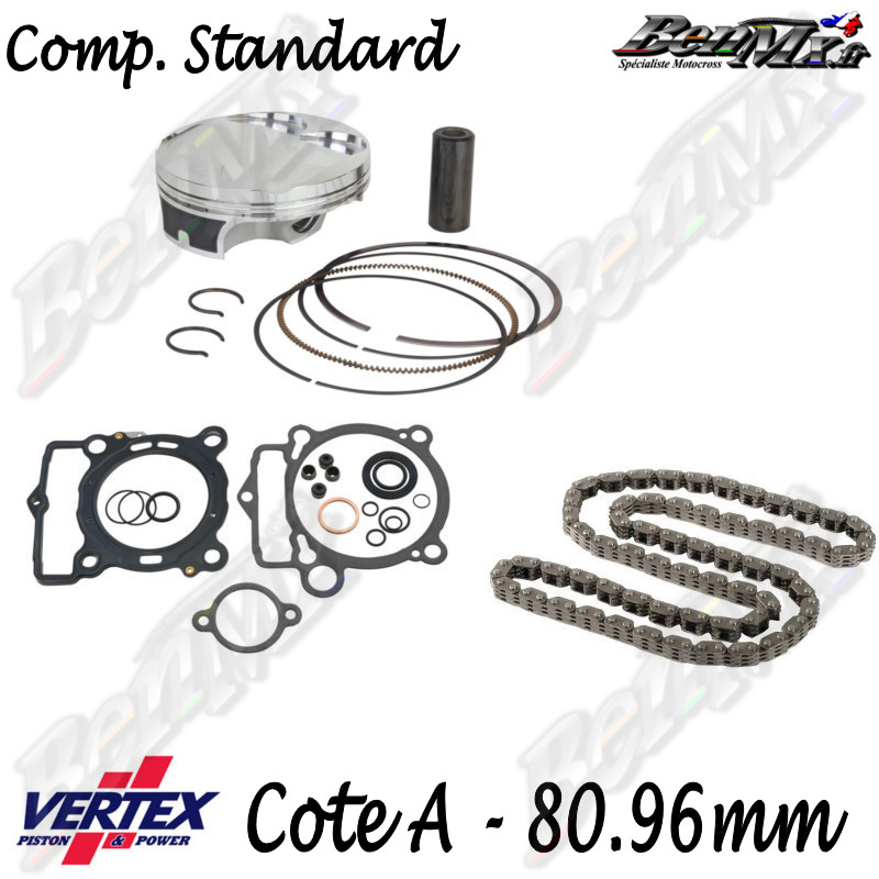 Kit piston VERTEX Forgé + Joints haut moteur + Chaine de distribution Cote A 80,96mm - comp 14.5:1 - KTM 250 SXF 2023/2025 - 250 EXCF 2024/2025 - HUSQVARNA 250 FC 2023/2025 - 250 FE 2024/2025 - GAS GAS 250 MCF-ECF 2024/2025