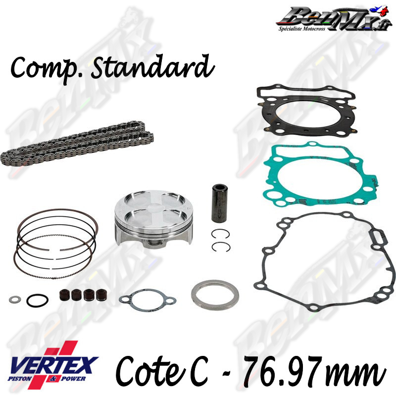 Kit piston VERTEX Forgé + Joints haut moteur + Chaine de distribution Cote C 76,97mm - comp 13.8:1 - YAMAHA 250 YZF 2019/2025